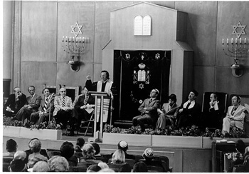 Gold attended numerous community meetings, attempting to stem the tide of "white flight." But he was unsuccessful. After seven years service in Philadelphia, he accepted a pulpit in 1964 at Temple Beth Sholom, in Las Vegas, Nev. At the time, it was the only synagogue in Las Vegas. Next: Gold in the west. |